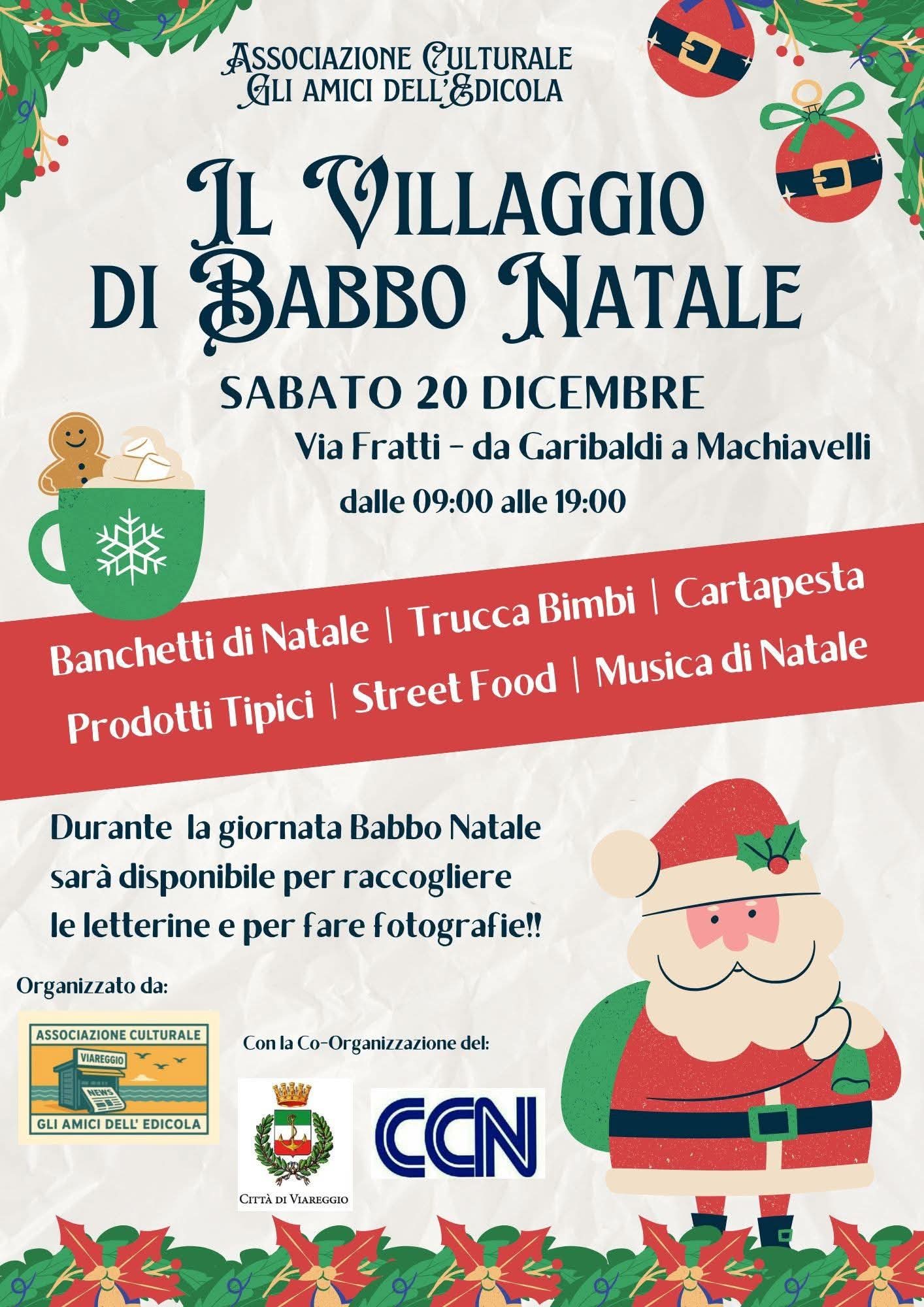 IL VILLAGGIO DI BABBO NATALESABATO 20 DICEMBREVia Fratti - da Garibaldi a Machiavellidalle 09:00 alle 19:00Banchetti di Natale |Trucca Bimbi |CartapestaProdotti Tipici |Street Food |Musica di NataleDurante la giornata Babbo Natale sarà disponibile per raccogliere le letterine e per fare fotografie!!