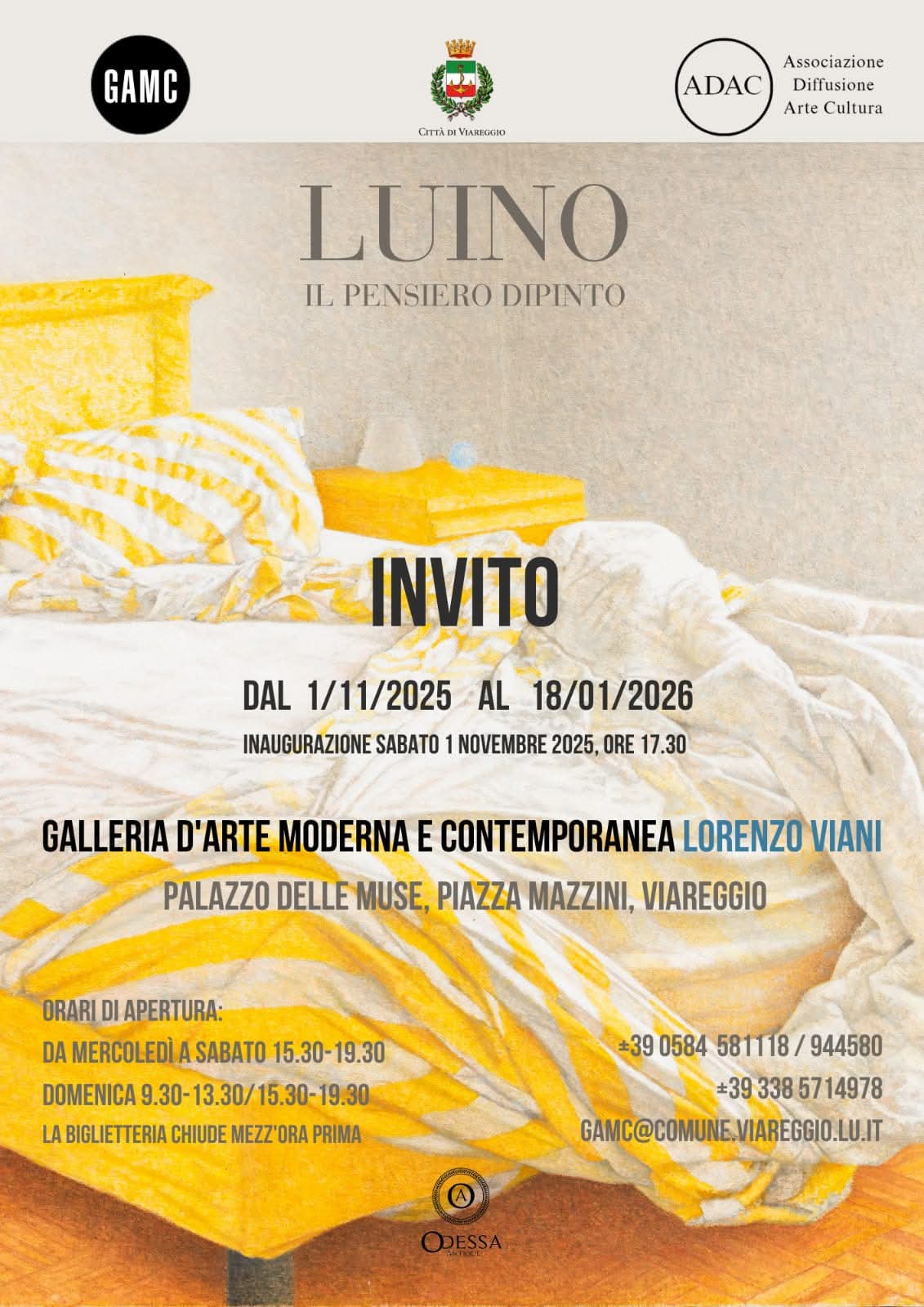 DAL 1/11/2025 AL 18/01/2026INAUGURAZIONE SABATO 1 NOVEMBRE 2025, ORE 17.30GALLERIA D'ARTE MODERNA E CONTEMPORANEA LORENZO VIANIPALAZZO DELLE MUSE, PIAZZA MAZZINI, VIAREGGIOORARI DI APERTURA:DA MERCOLEDΓ A SABATO 15.30-19.30DOMENICA 9.30-13.30/15.30-19.30LA BIGLIETTERIA CHIUDE MEZZ'ORA PRIMA+39 0584 581118/944580+39 338 5714978